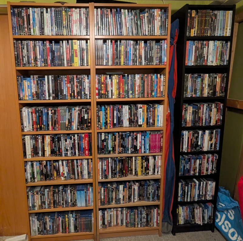 Jag har städat undan en hel del grejer i klädvårdsrummet (som det heter på husritningen) och fått fram DVD/Blu-ray-samlingen. Så nu måste jag väl koppla in Blu-ray-spelaren också så de går att använda 🙂