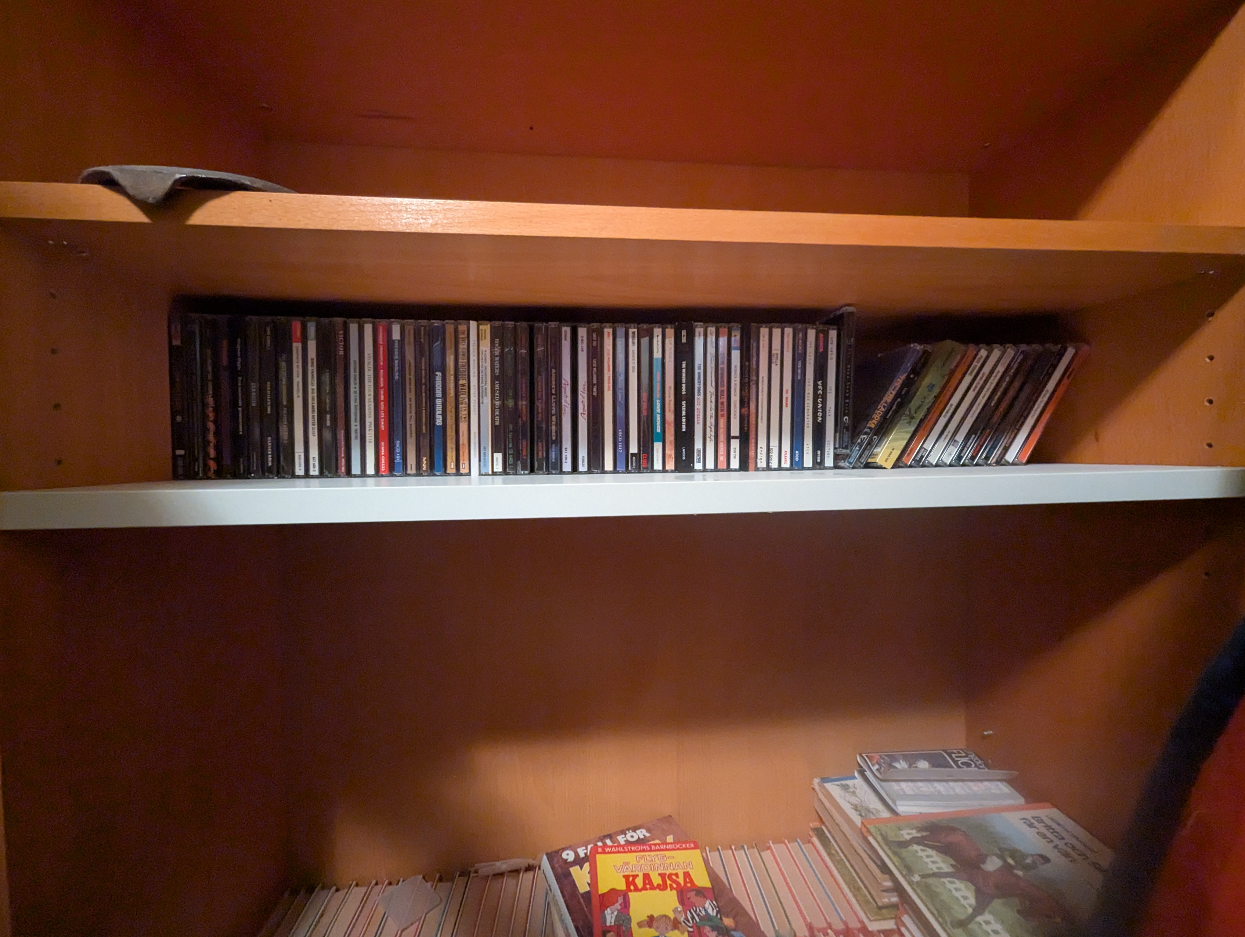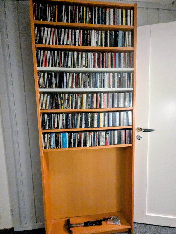 Testar att göra en Billy-hylla grundare så den passar bättre för CD-skivor, och inte heller tar onödigt med plats. Jag vill inte ha en bokfärgad hylla så det är bara som test för att se om jag ska bygga en från grunden eller köpa nya vita och bygga om. Det lutar åt det första då det är i princip lika mycket jobb och det alternativet är typ halva priset.